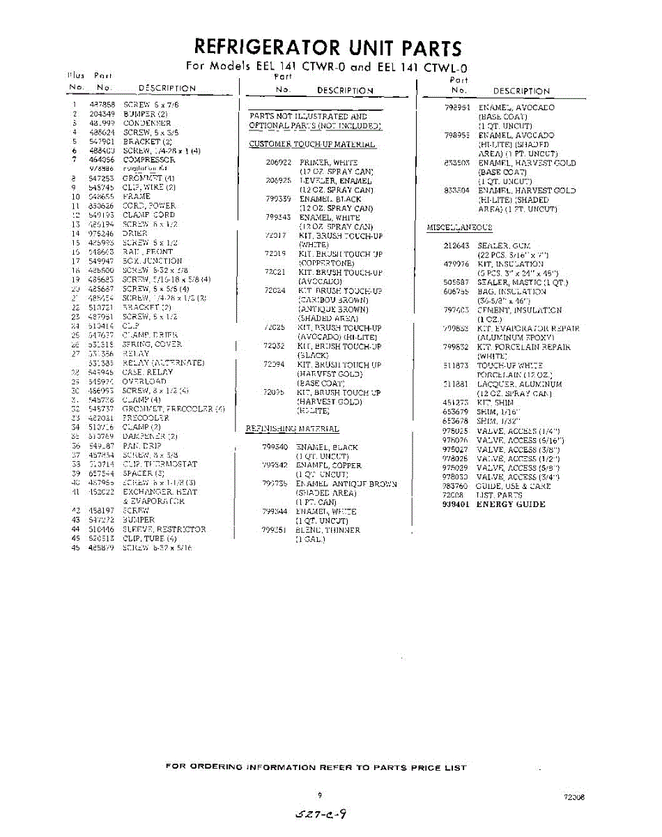 Parts for EEL141CTWR0