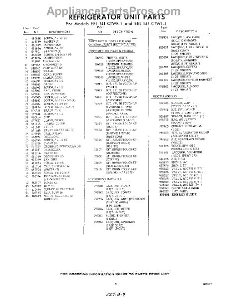 Parts for Whirlpool EEL141CTWR1: 09 - Lit / Optional Parts