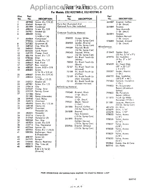 Parts for Whirlpool EEL142CTWR0: 09 - Lit / Optional Parts