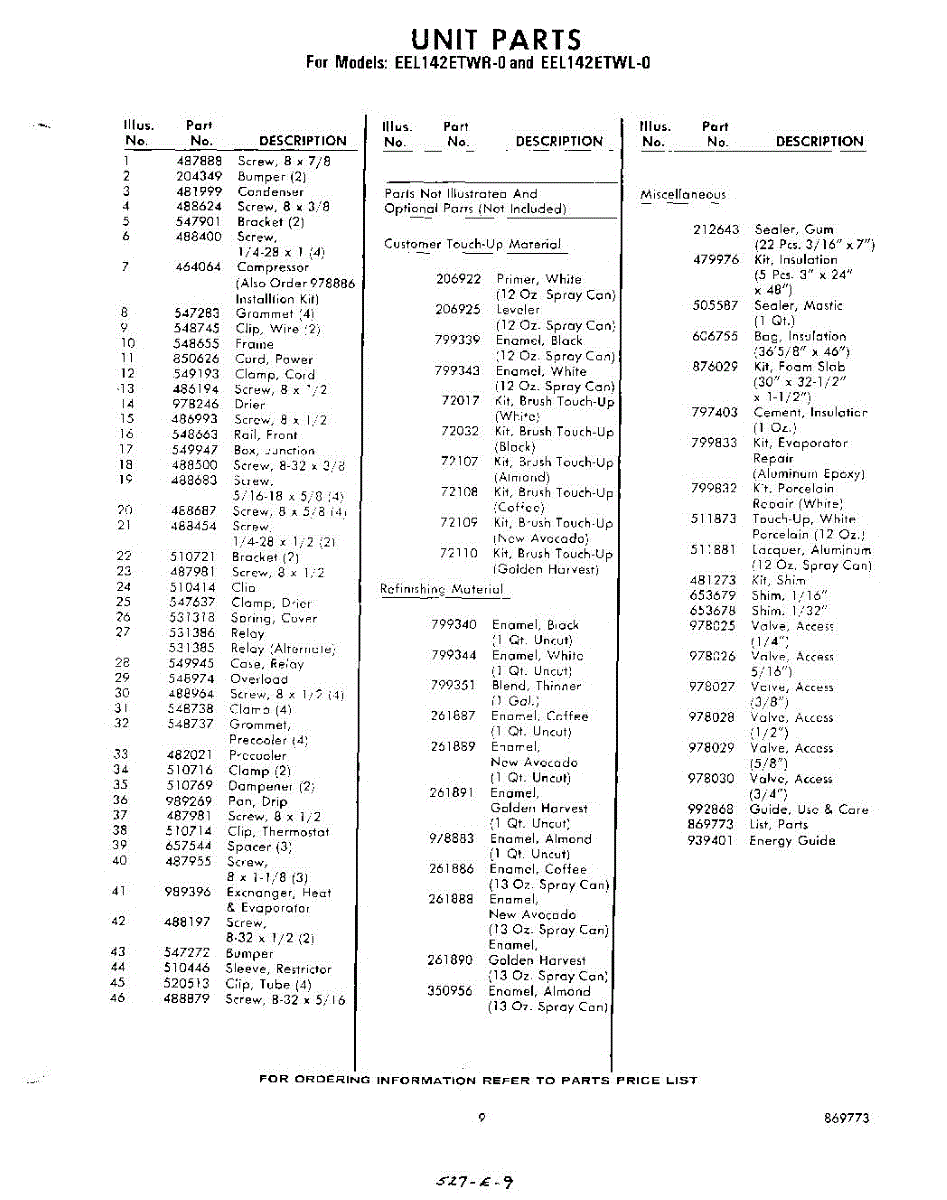 Parts for EEL142ETWR0