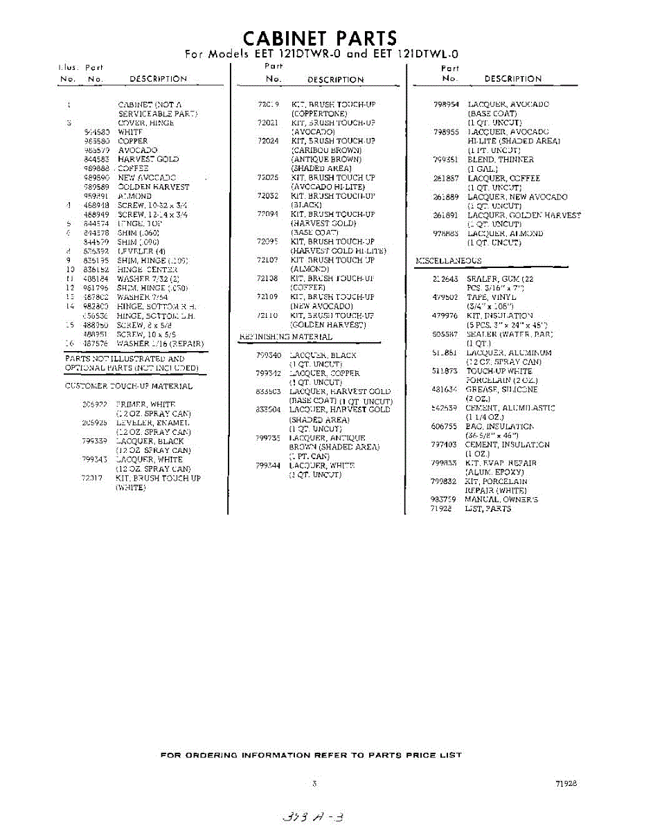 Parts for EET121DTWR0