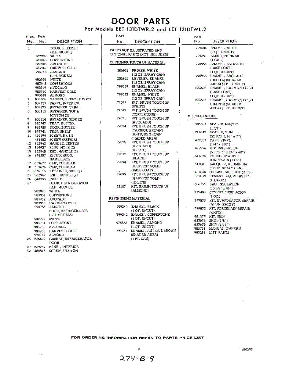 Parts for Whirlpool EET131DTWR2: 09 - Lit / Optional Parts