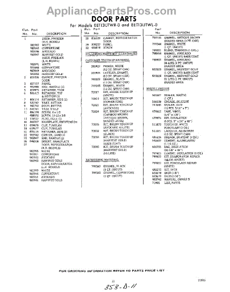 Parts for Whirlpool EET131JTWR0: 11 - Lit / Optional Parts