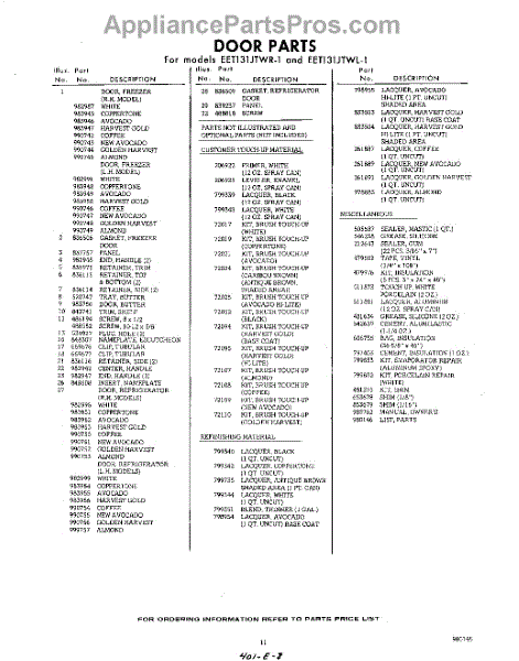 Parts for Whirlpool EET131JTWR1: 11 - Lit / Optional Parts