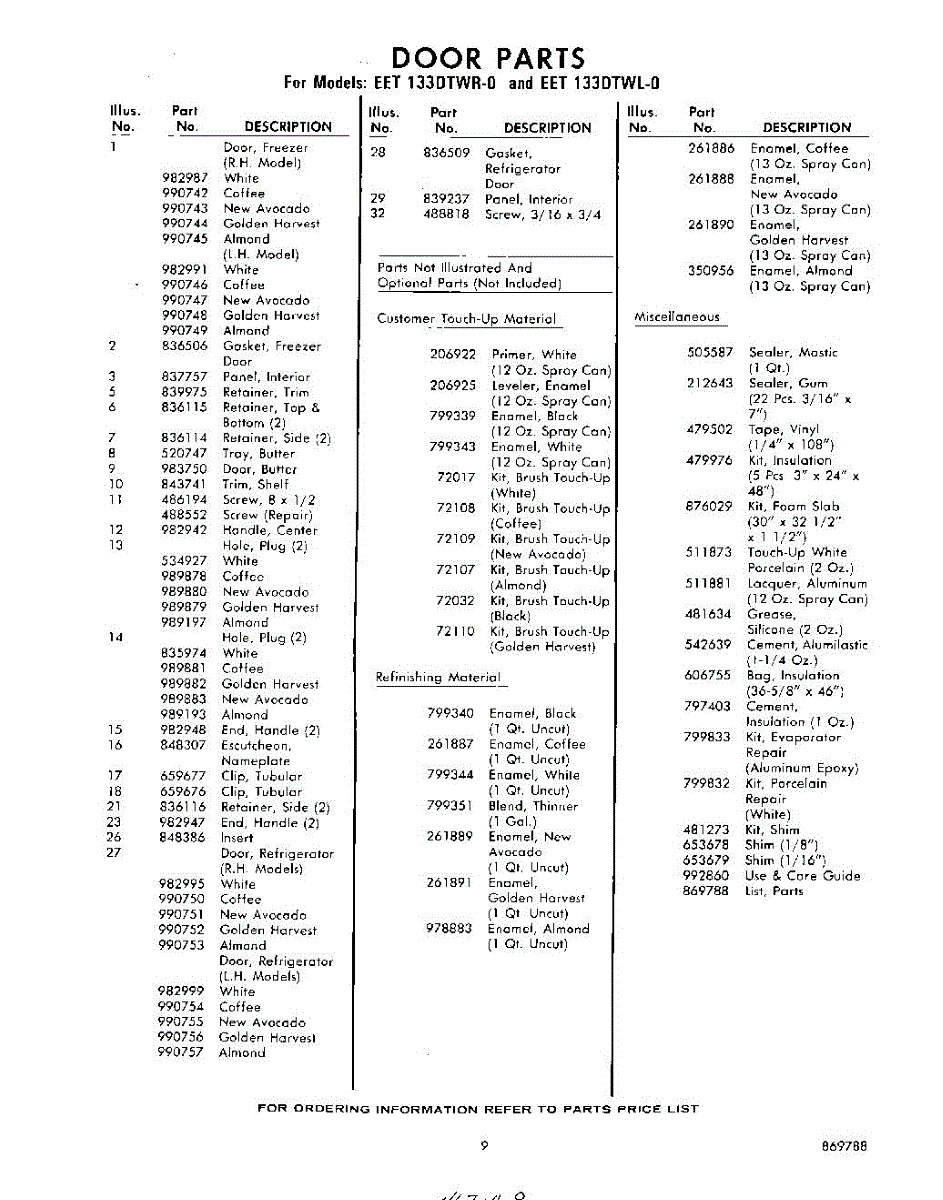 Parts for EET133DTWR0