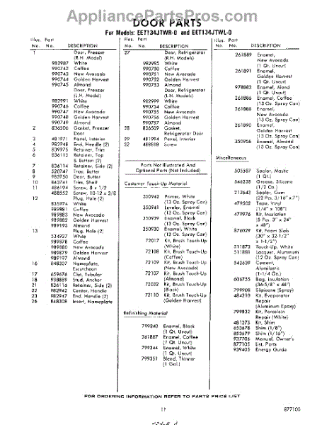 Parts for Whirlpool EET134JTWR0: 11 - Lit / Optional Parts