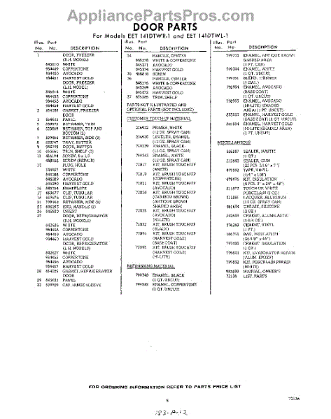 Parts for Whirlpool EET141DTWR1: 05 - Lit / Optional Parts