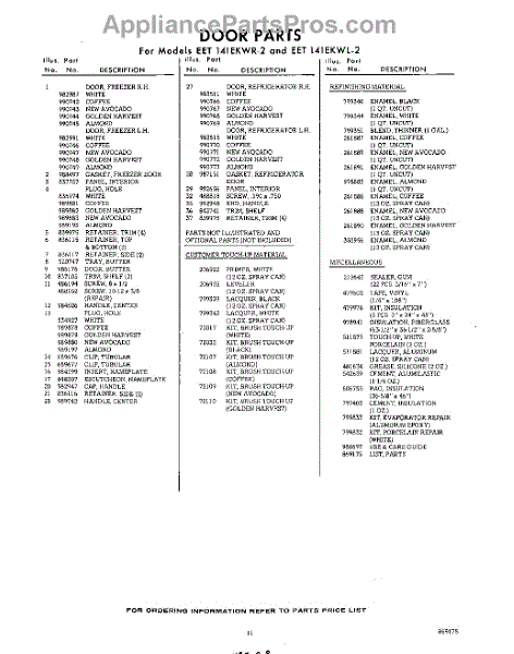 Parts for Whirlpool EET141EKWR2: 11 - Lit / Optional Parts