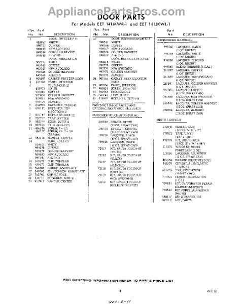 Parts for Whirlpool EET141JKWR1: 11 - Lit / Optional Parts
