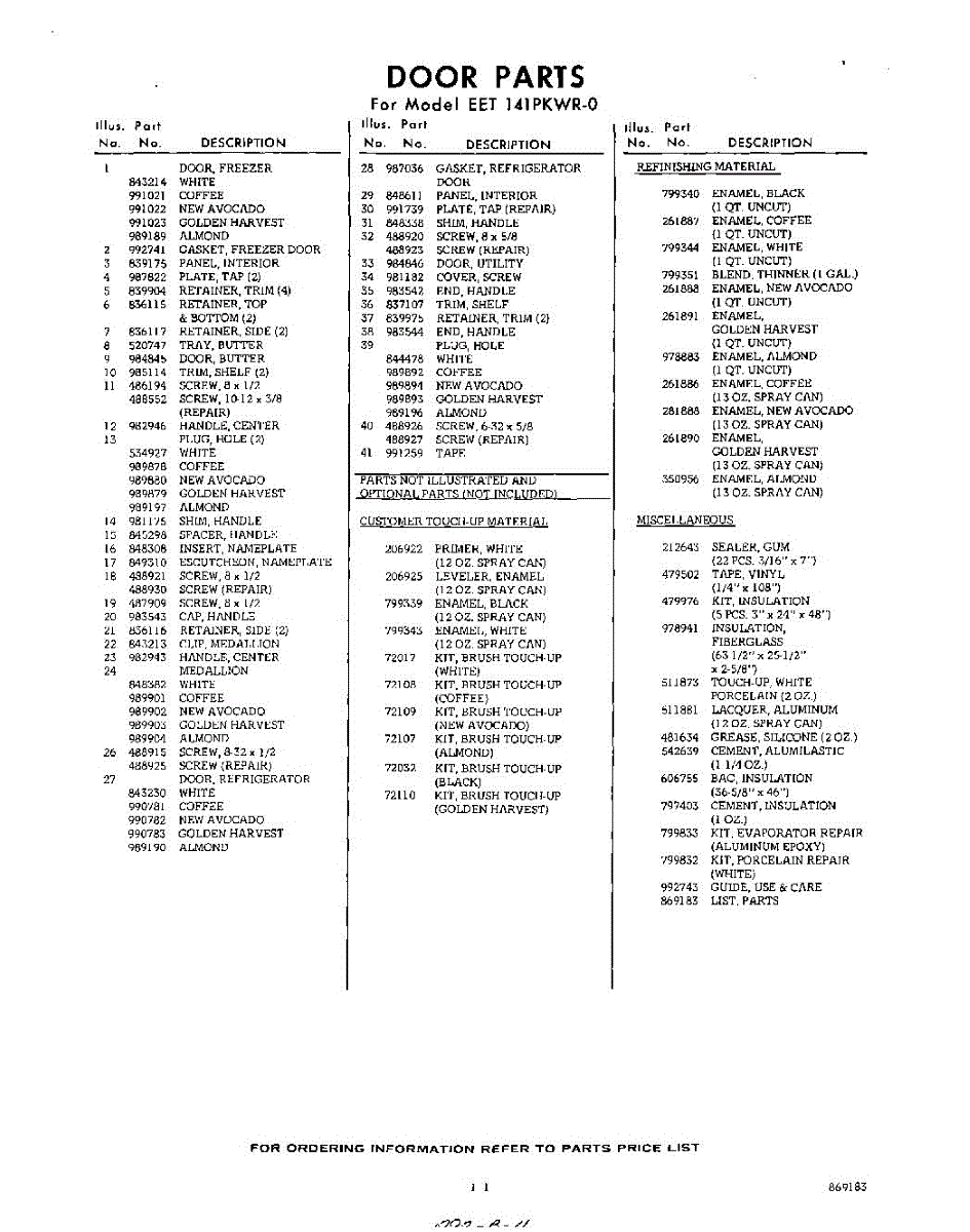 Parts for Whirlpool EET141PKWR0: 11 - Lit / Optional Parts