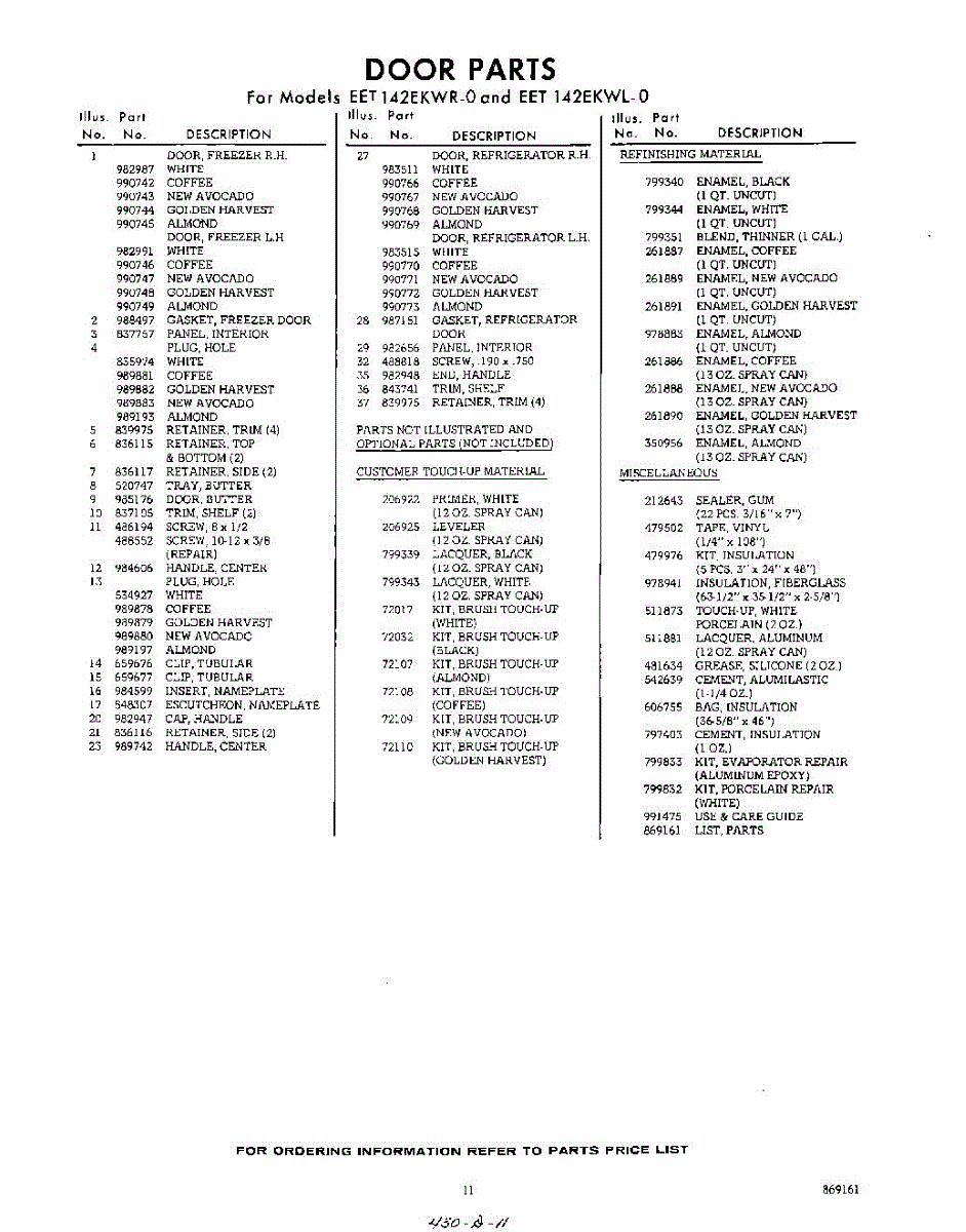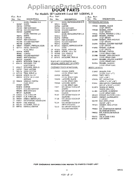 Parts for Whirlpool EET142EKWR0: 11 - Lit / Optional Parts