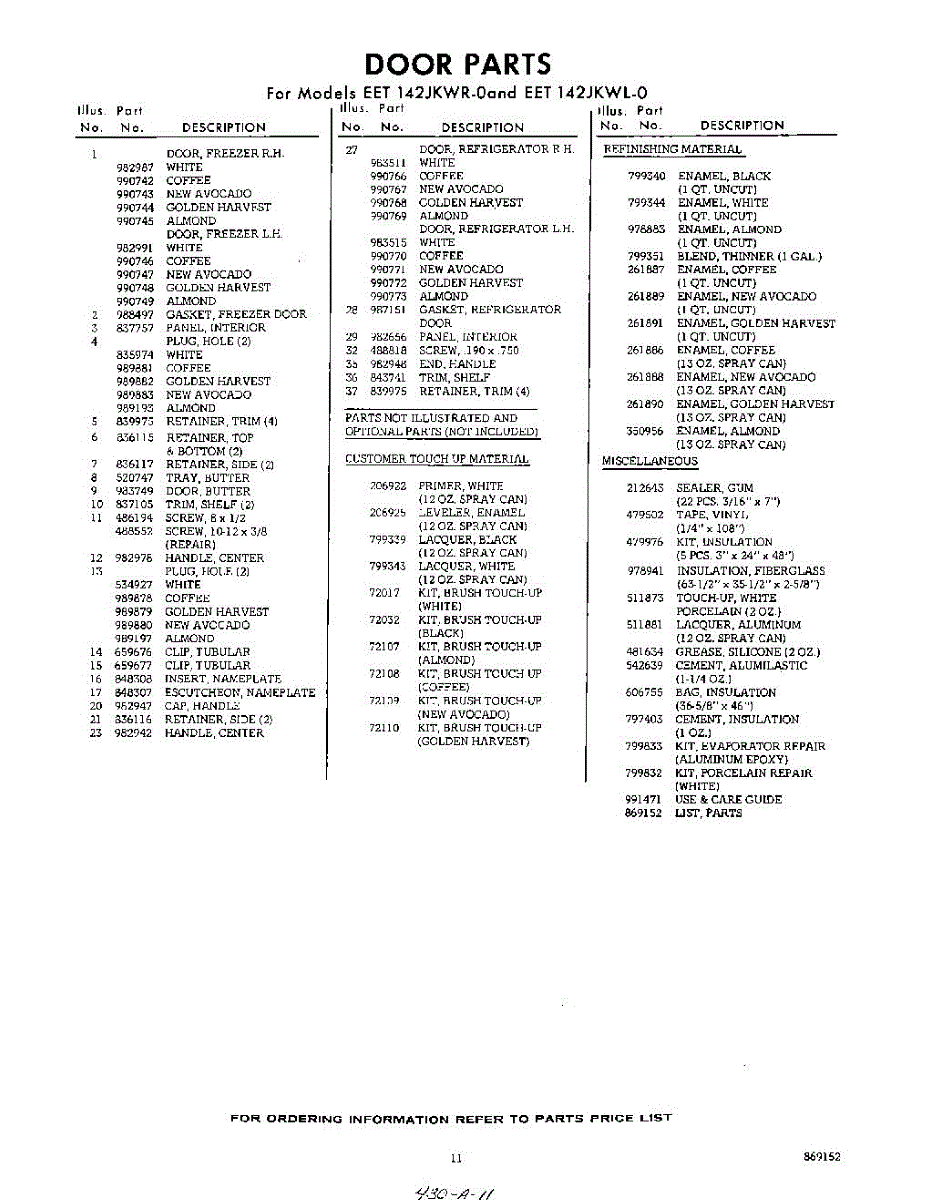 Parts for Whirlpool EET142JKWR0: 11 - Lit / Optional Parts