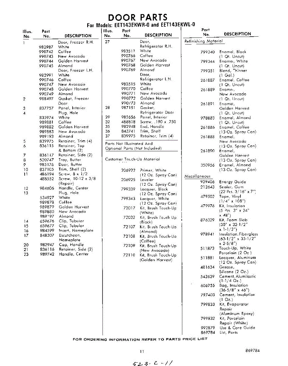 Parts for Whirlpool EET143EKWR0: 11 - Lit / Optional Parts