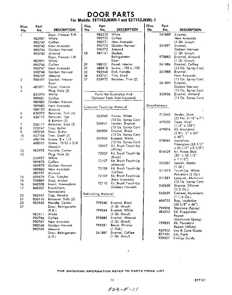 Parts for Whirlpool EET143JKWR1: 11 - Lit / Optional Parts