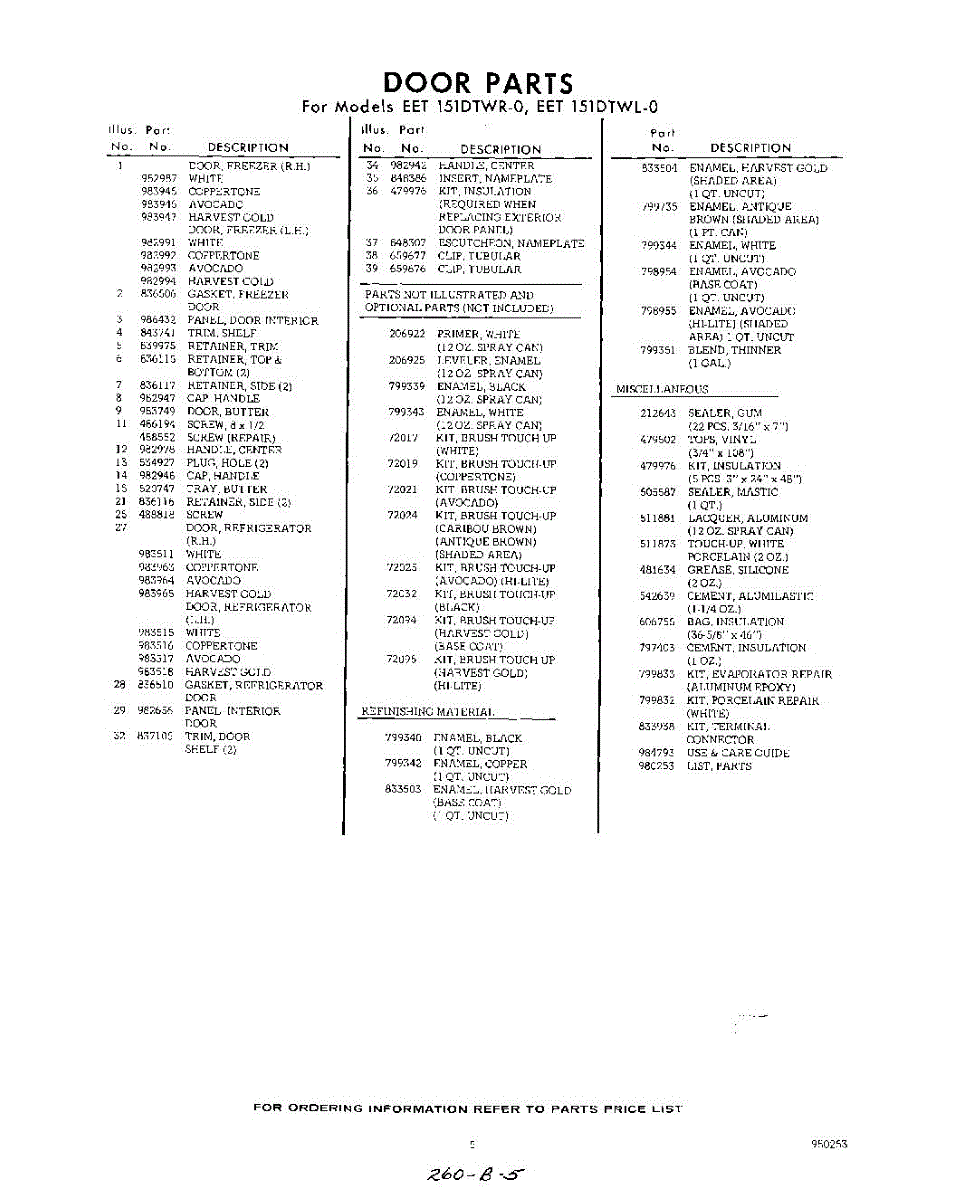 Parts for Whirlpool EET151DTWR0: 05 - Lit / Optional Parts