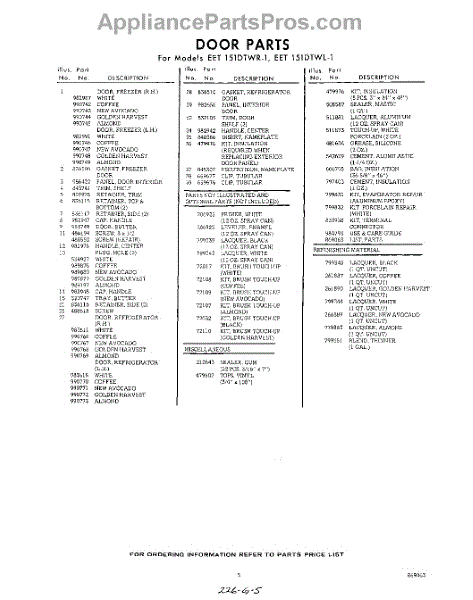 Parts for Whirlpool EET151DTWR1: 05 - Lit / Optional Parts