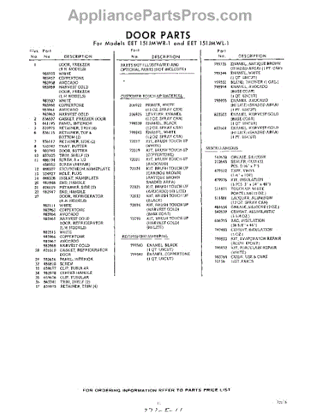 Parts for Whirlpool EET151JMWR1: 11 - Lit / Optional Parts