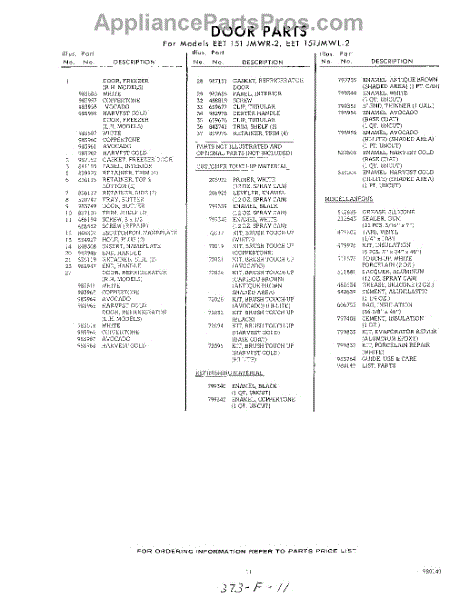 Parts for Whirlpool EET151JMWR2: 11 - Lit / Optional Parts
