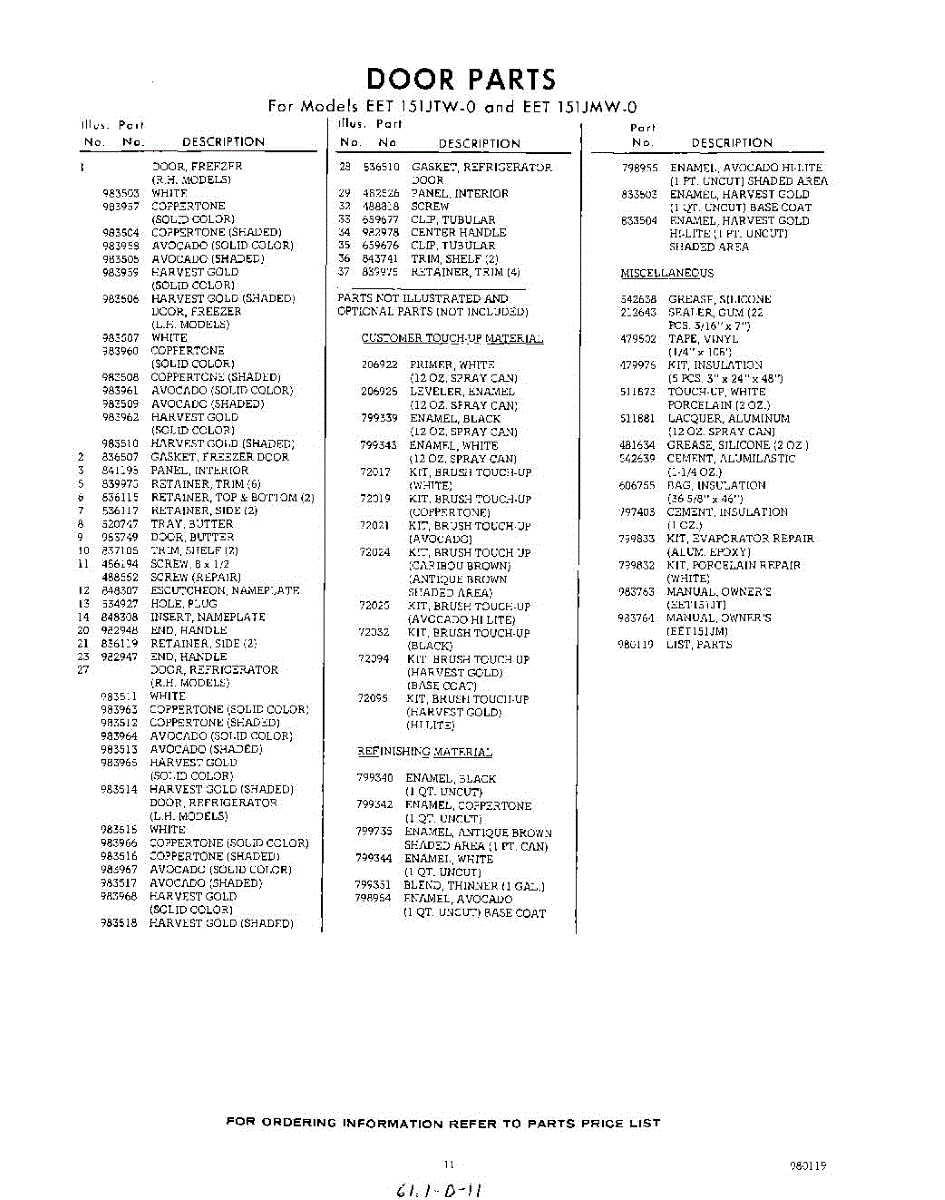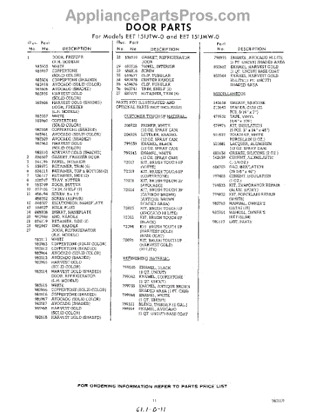 Parts for Whirlpool EET151JTWR0: 11 - Lit / Optional Parts
