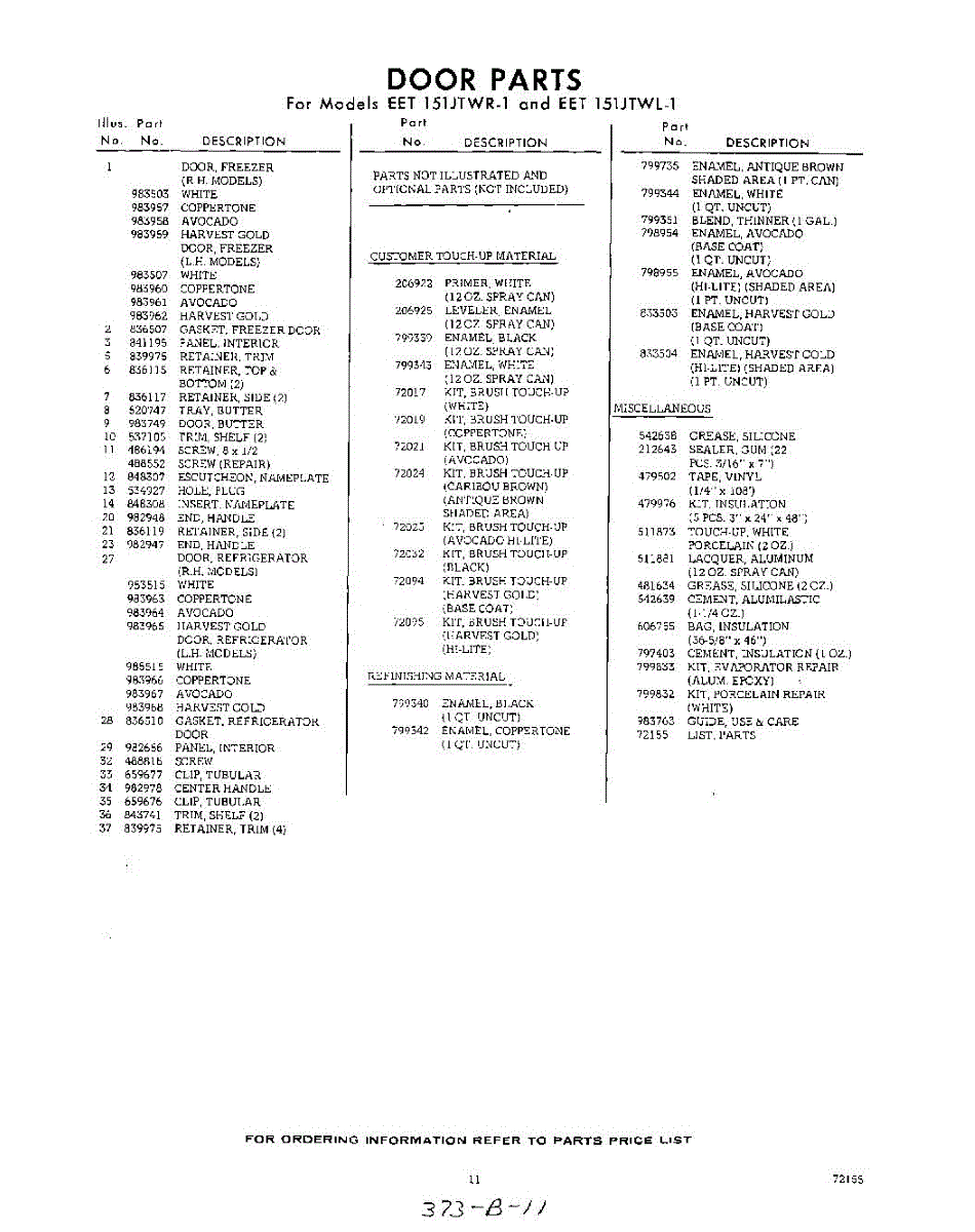Parts for Whirlpool EET151JTWR1: 11 - Lit / Optional Parts