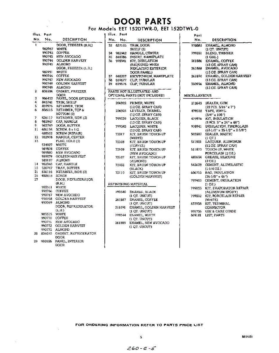Parts for EET152DTWR0