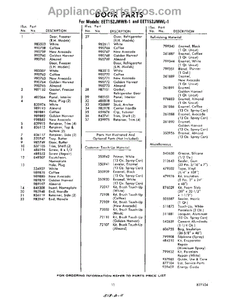 Parts for Whirlpool EET152JMWR1: 11 - Lit / Optional Parts