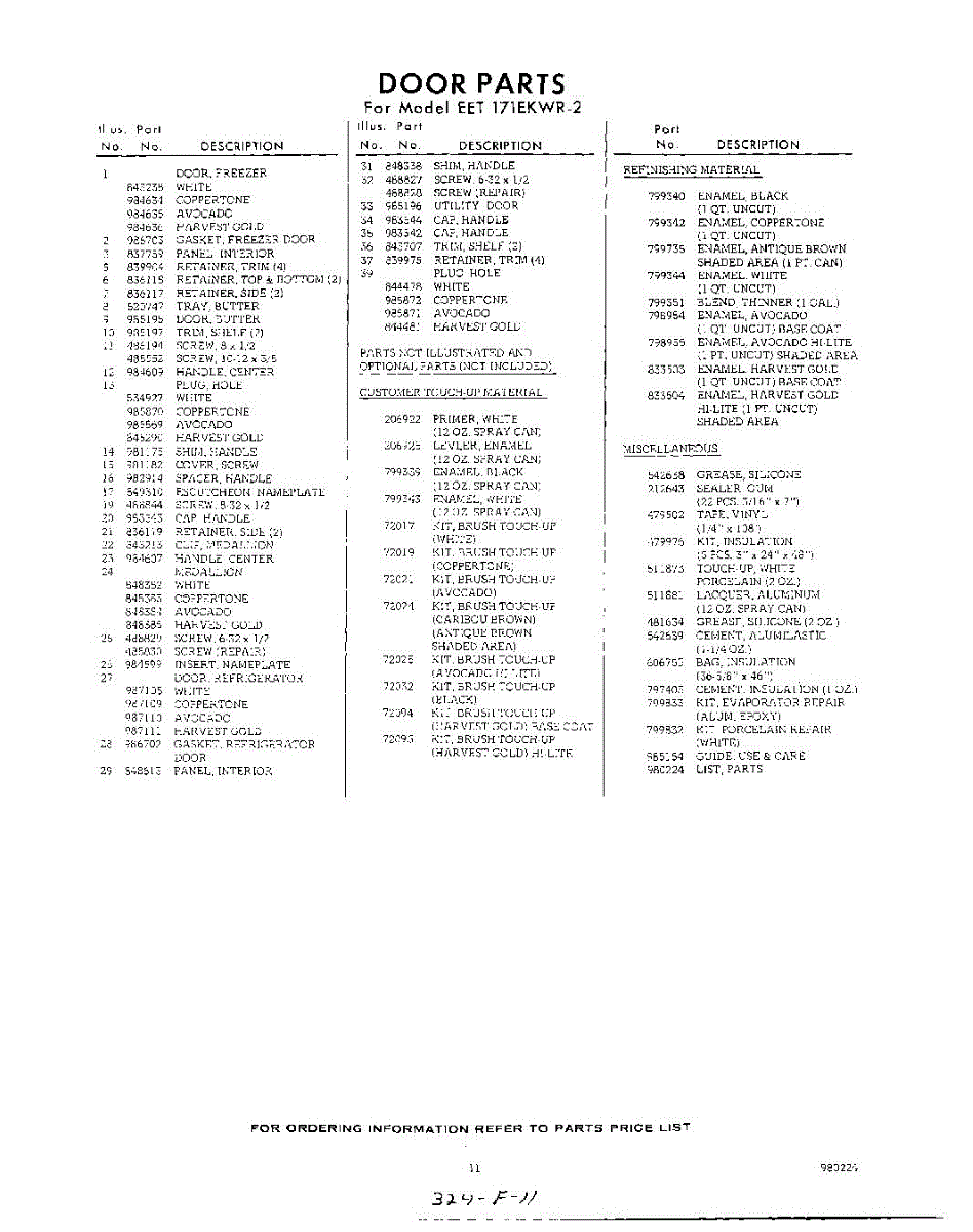 Parts for Whirlpool EET171EKWR2: 11 - Lit / Optional Parts