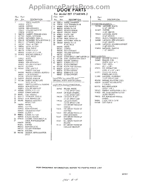 Parts for Whirlpool EET171MKWR2: 11 - Lit / Optional Parts