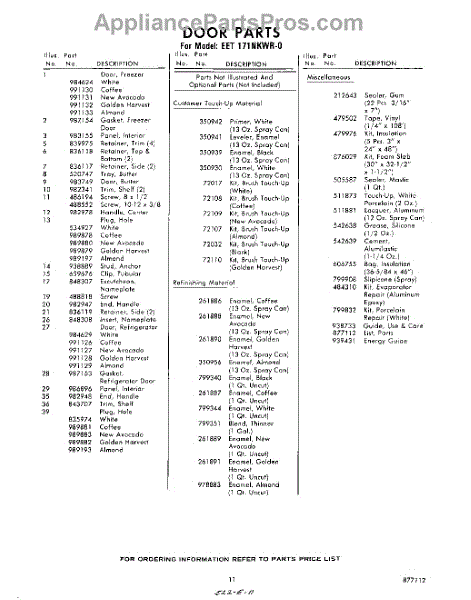 Parts for Whirlpool EET171NKWR0: 11 - Lit / Optional Parts