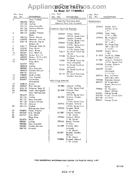 Parts for Whirlpool EET171NKWR2: 11 - Lit / Optional Parts