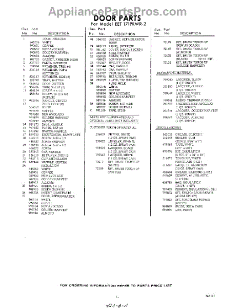Parts for EET171PKWR2