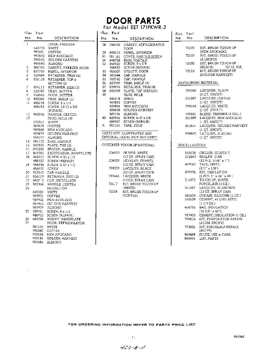 Parts for Whirlpool EET171PKWR2: 11 - Lit / Optional Parts