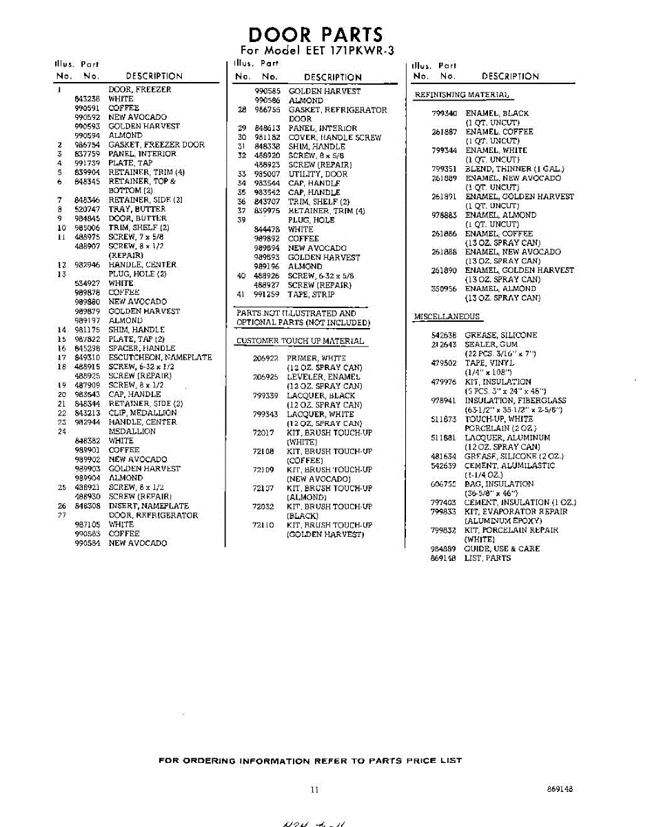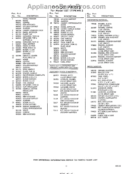 Parts for Whirlpool EET171PKWR3: 11 - Lit / Optional Parts