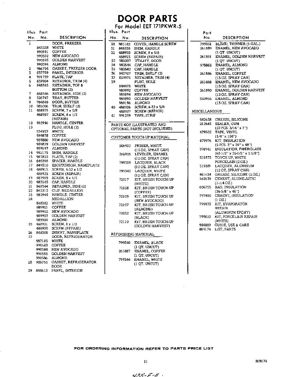 Parts for Whirlpool EET171PKWR5: 11 - Lit / Optional Parts