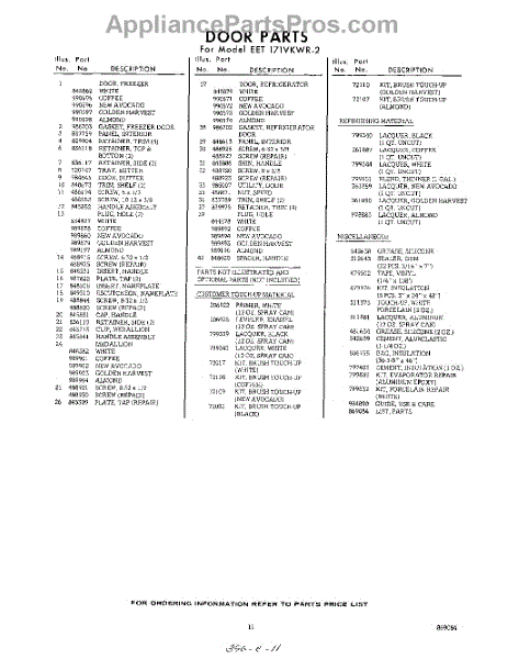 Parts for Whirlpool EET171VKWR2: 11 - Lit / Optional Parts