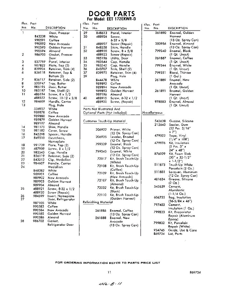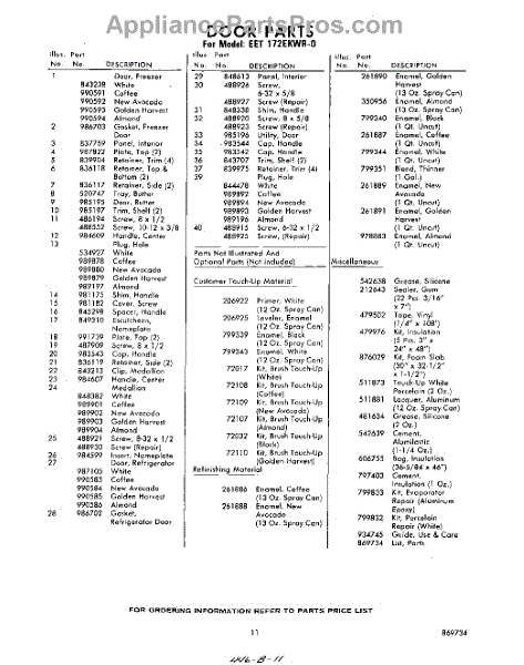 Parts for Whirlpool EET172EKWR0: 11 - Lit / Optional Parts