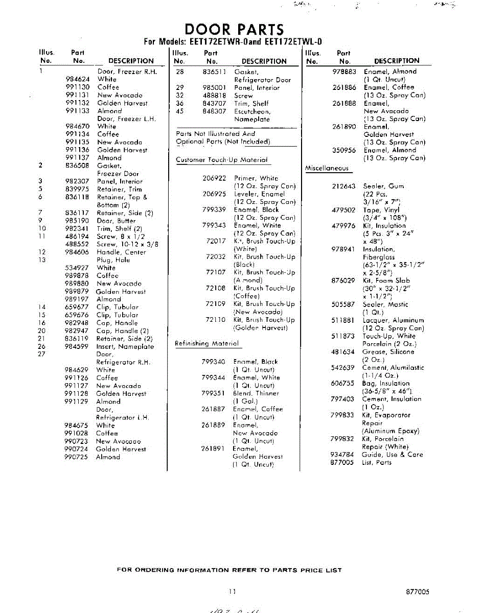 Parts for Whirlpool EET172ETWR0: 11 - Lit / Optional Parts