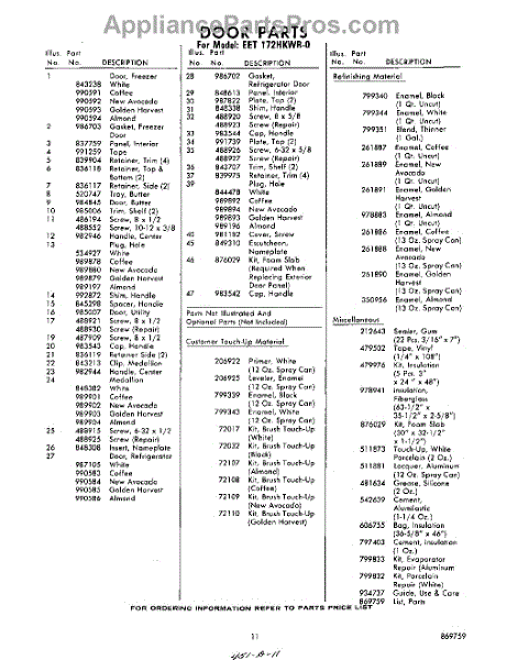 Parts for Whirlpool EET172HKWR0: 11 - Lit / Optional Parts