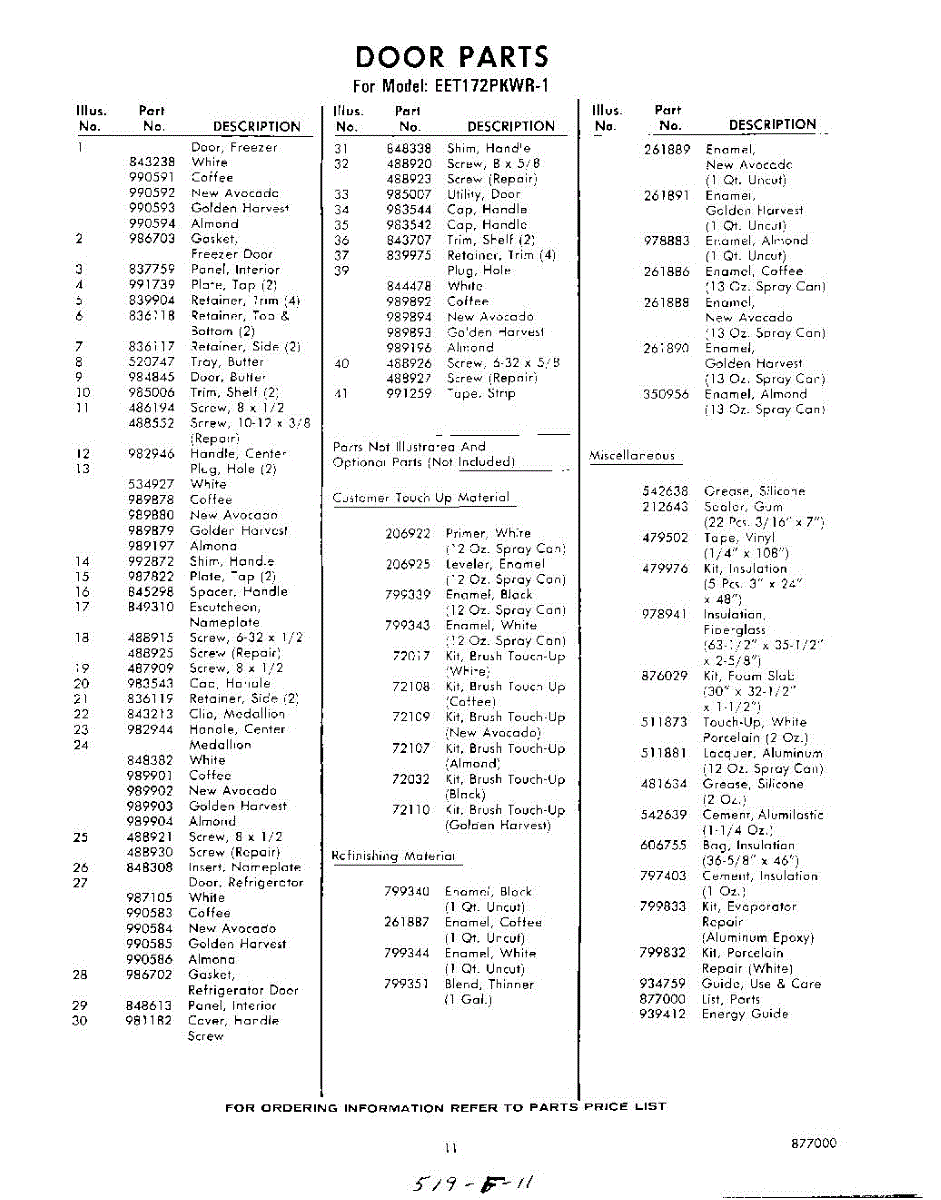 Parts for Whirlpool EET172PKWR1: 11 - Lit / Optional Parts