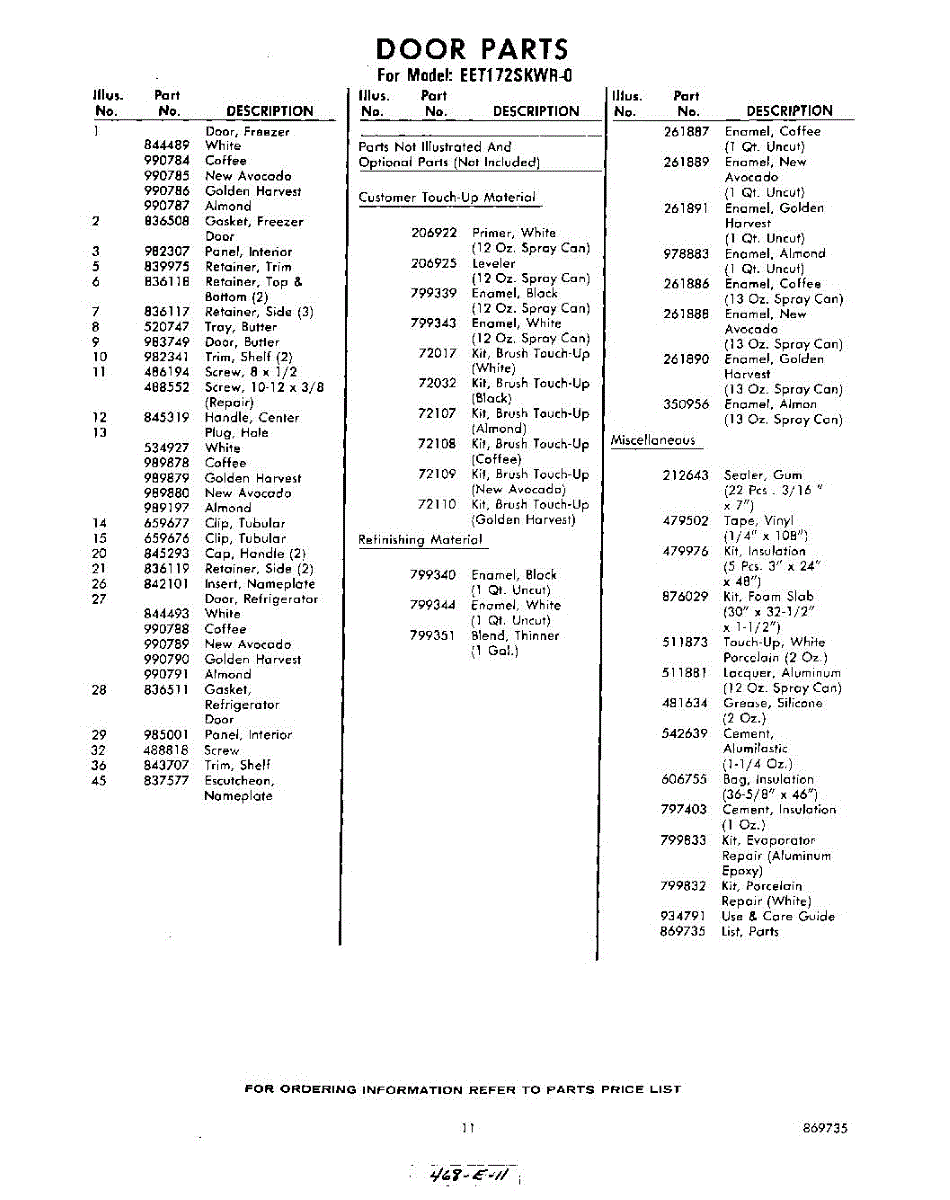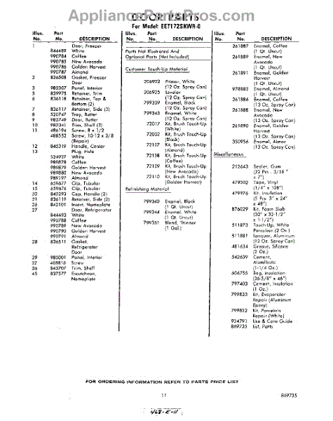 Parts for Whirlpool EET172SKWR0: 11 - Lit / Optional Parts