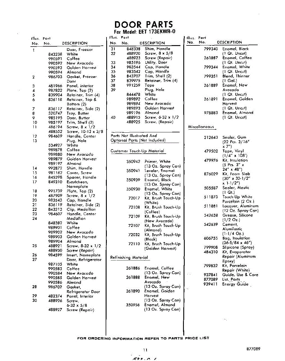 Parts for Whirlpool EET173EKWR0: 11 - Lit / Optional Parts
