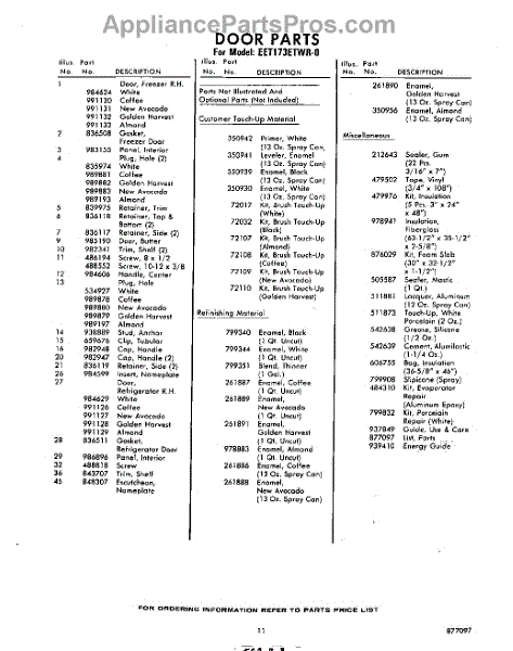 Parts for Whirlpool EET173ETWR0: 11 - Lit / Optional Parts