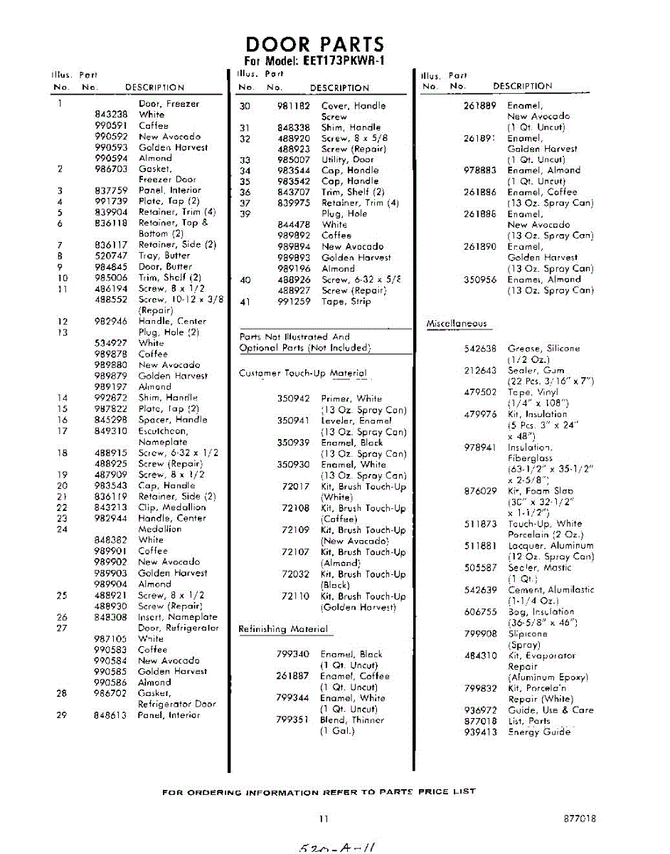 Parts for Whirlpool EET173PKWR1: 11 - Lit / Optional Parts