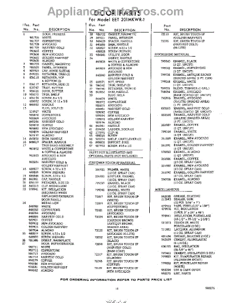 Parts for Whirlpool EET201MKWR1: 11 - Lit / Optional Parts