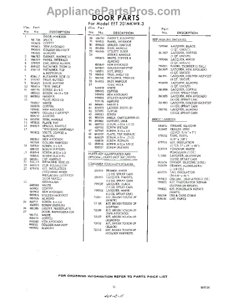 Parts for Whirlpool EET201MKWR3: 11 - Lit / Optional Parts