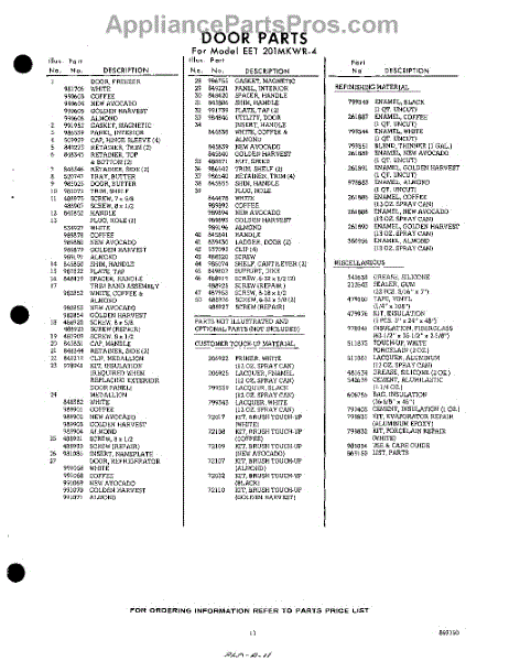 Parts for Whirlpool EET201MKWR4: 11 - Lit / Optional Parts