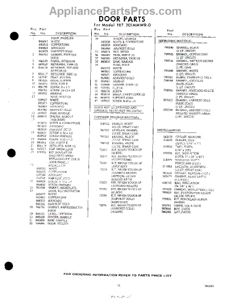 Parts for Whirlpool EET201MMWR0: 11 - Lit / Optional Parts