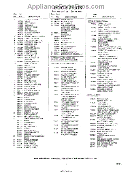 Parts for Whirlpool EET201PKWR1: 11 - Lit / Optional Parts