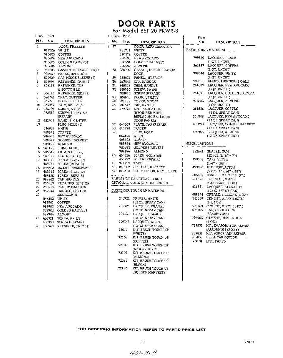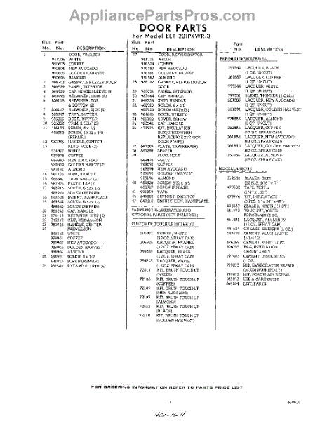 Parts for Whirlpool EET201PKWR3: 11 - Lit / Optional Parts
