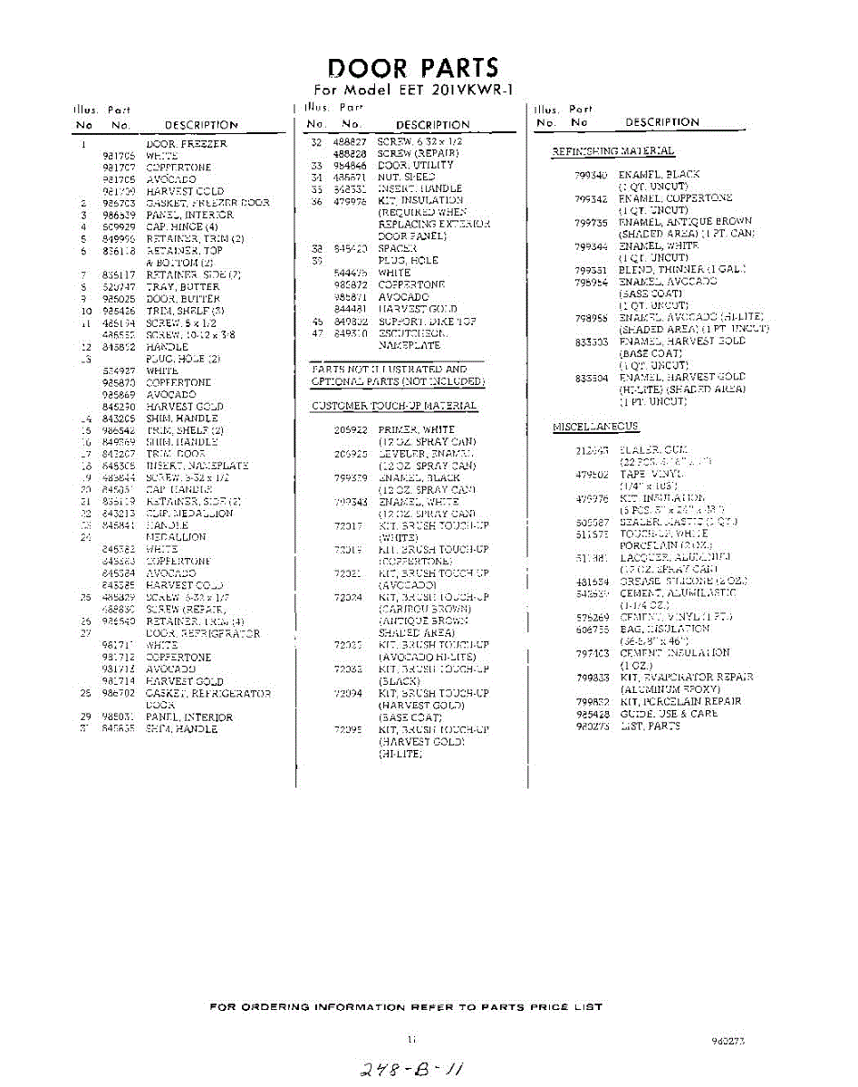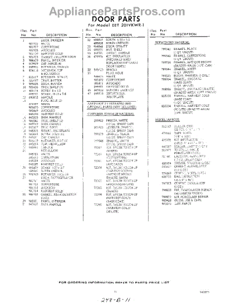 Parts for Whirlpool EET201VKWR1: 11 - Lit / Optional Parts